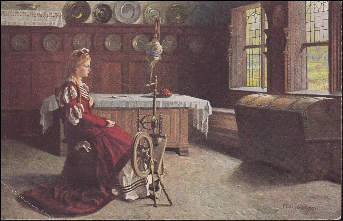 Ansichtskarte Gemälde von R. Panitzsch: Gretchem am Spinnrad