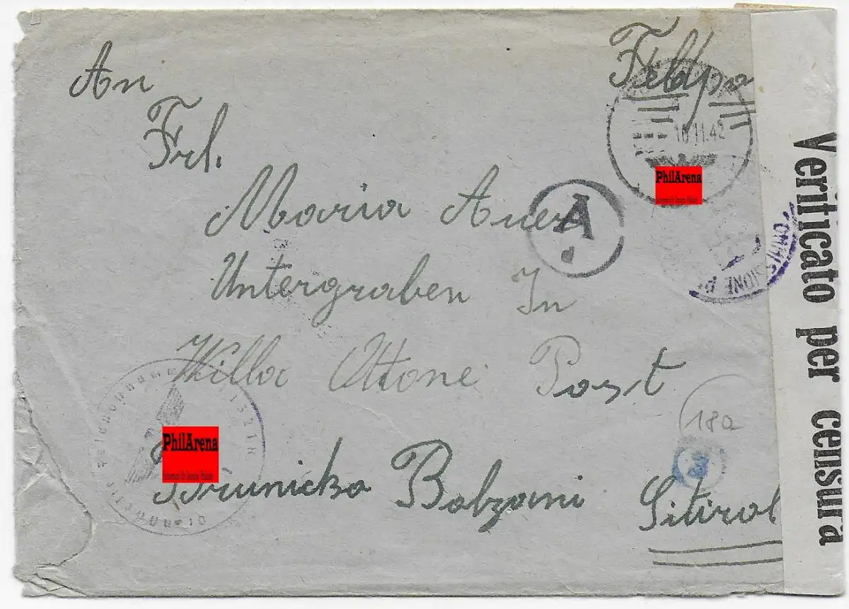 Feldpost: Südtiroler in der Wehrmacht, FPNr. 11321A, Dt. und ital. Zensur