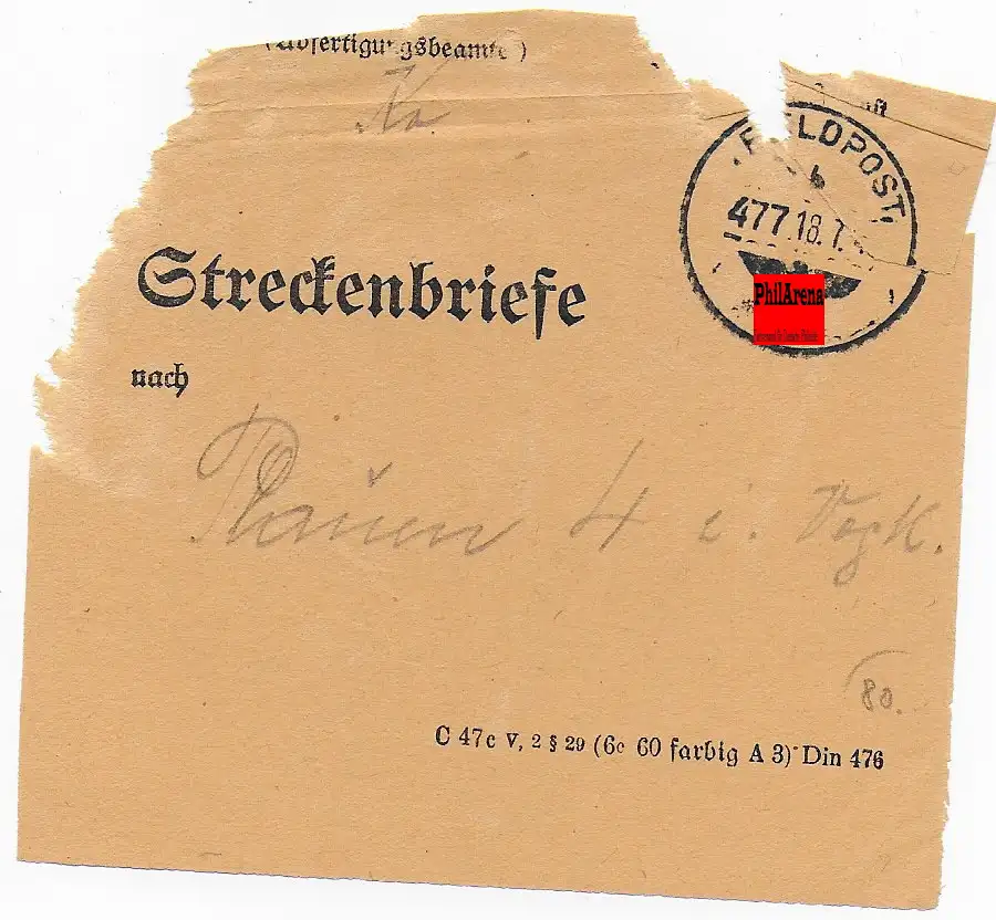 Feldpost: Vorbindezettel Streckenbriefe Nr. 477 nach Paun 1942