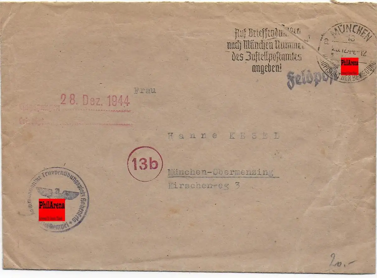 Feldpost: WEFA-H, Hohenfels 1944 nach München