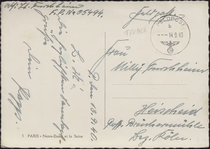 Feldpost auf Ansichtskarte Paris Notre-Dame FP-Nummer 05494 FELDPOST b - 14.9.40