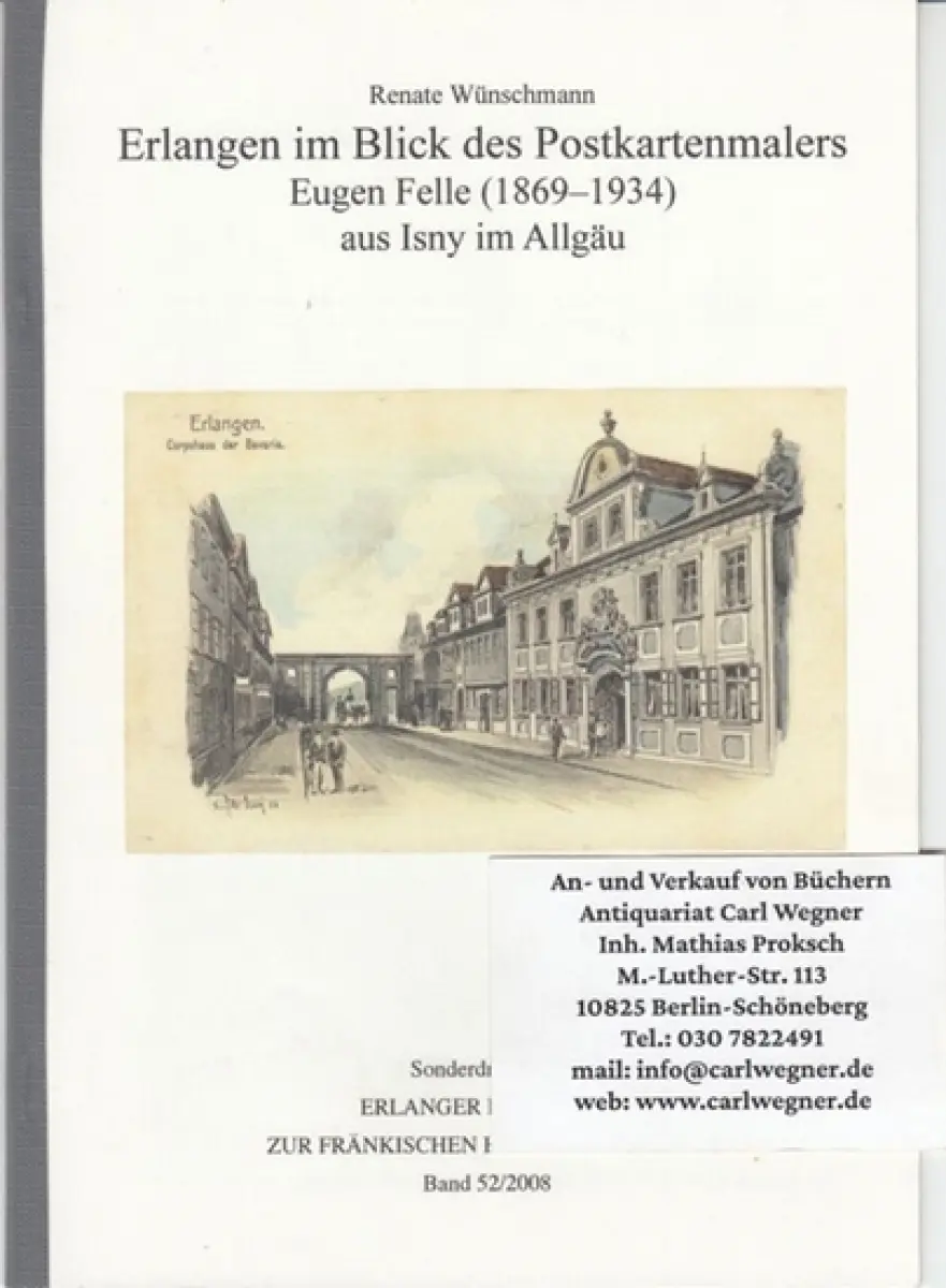 Felle, Eugen. - Wünschmann, Renate: Erlangen im Blick des Postkartenmalers Eugen Felle (1869-1934) aus Isny im Allgäu. - Sonderdruck aus: Erlanger Bausteine zur Fränkischen Heimatforschung, Band 52/2008.