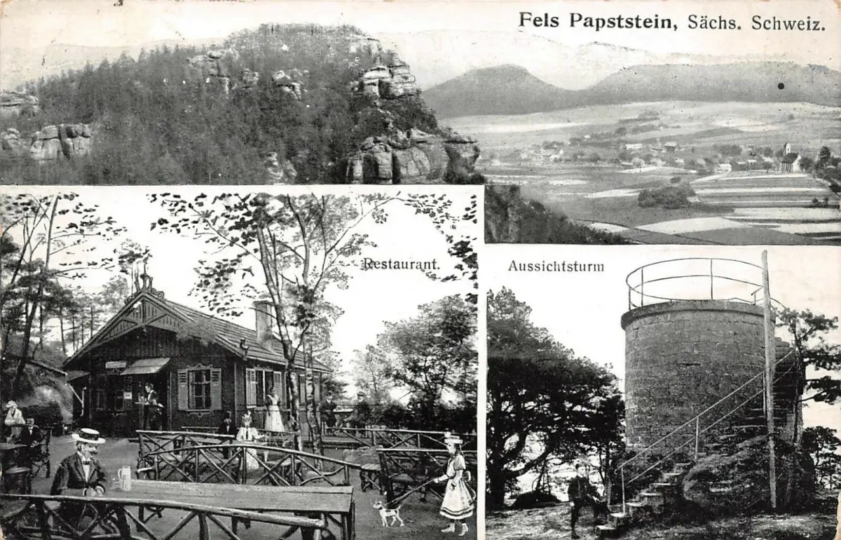 Fels Papstein Sächs. Schweiz Restaurant Aussichtsturm Postkarte AK 1927