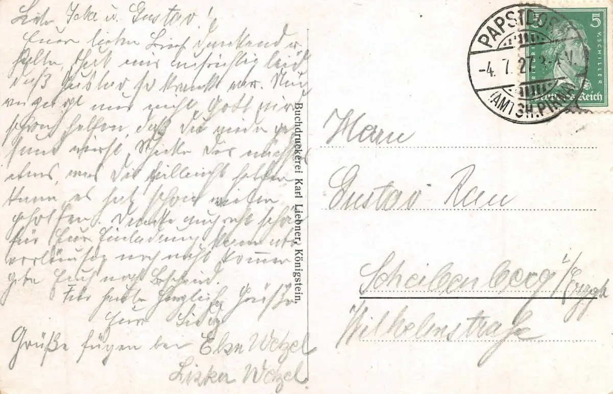 Rückseite: gelaufen 1927 von Papstdorf (Amtsh. Pirna)
