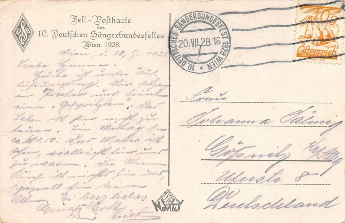Fest Postkarte 10 DEUTSCHEN SÄNGERBUNDESFESTES WIEN 1928