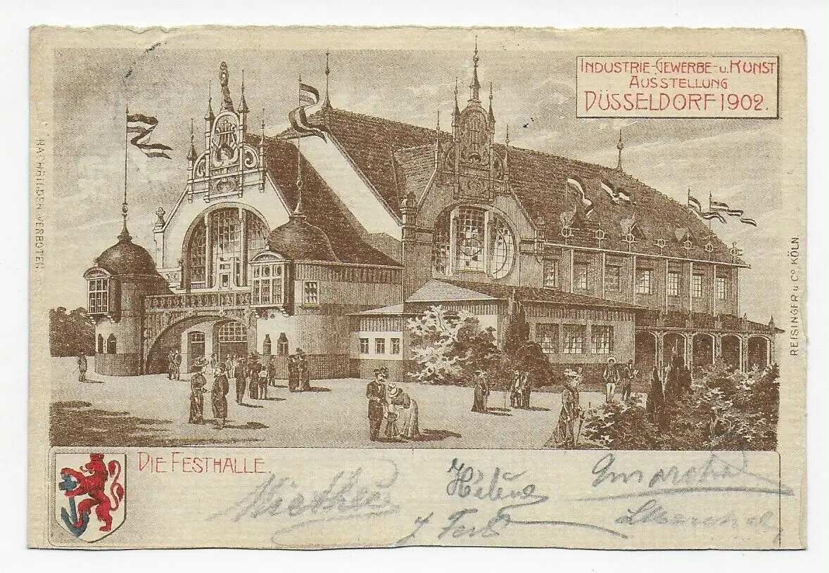 Festhalle Düsseldorf 1902 mit Messemarke/Vignette nach Neuried