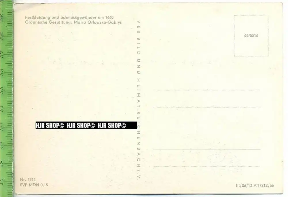 „Festkleidung und Schmuckgewänder um 1660“ um 1960/1970 ungebrauchte Karte