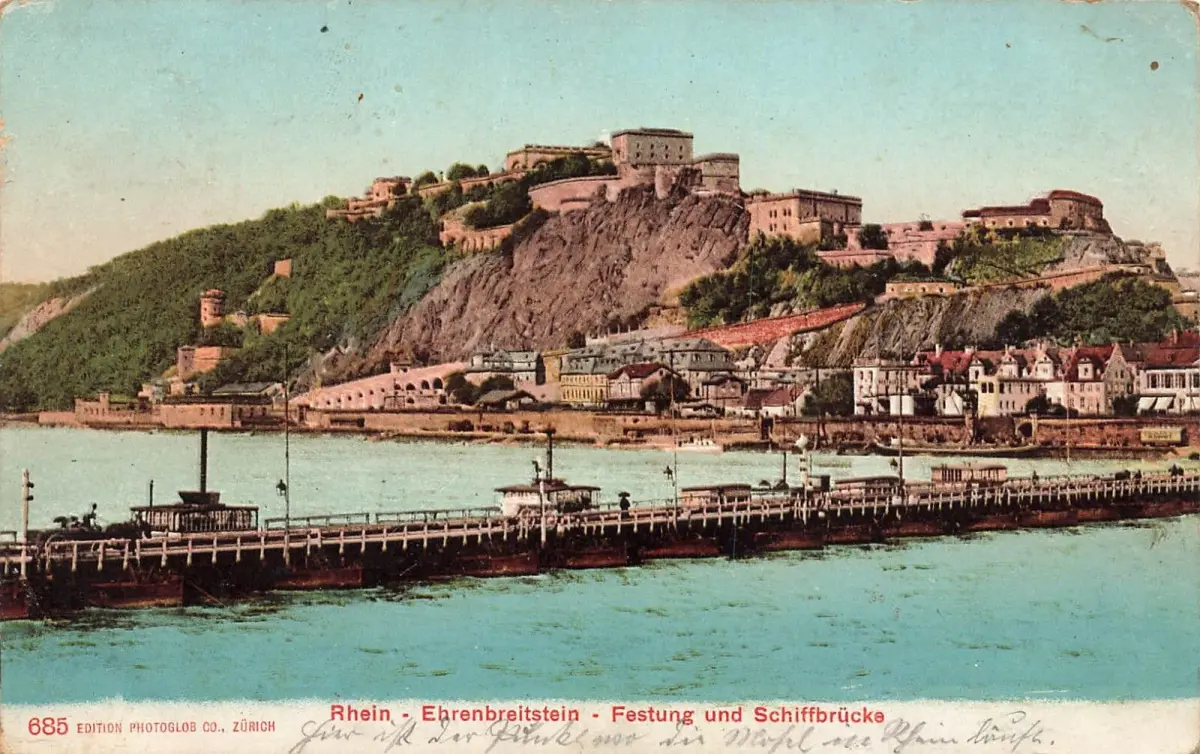 Festung und Schiffbrücke in Ehrenbreitenstein Rheinland-Pfalz Postkarte AK 1906