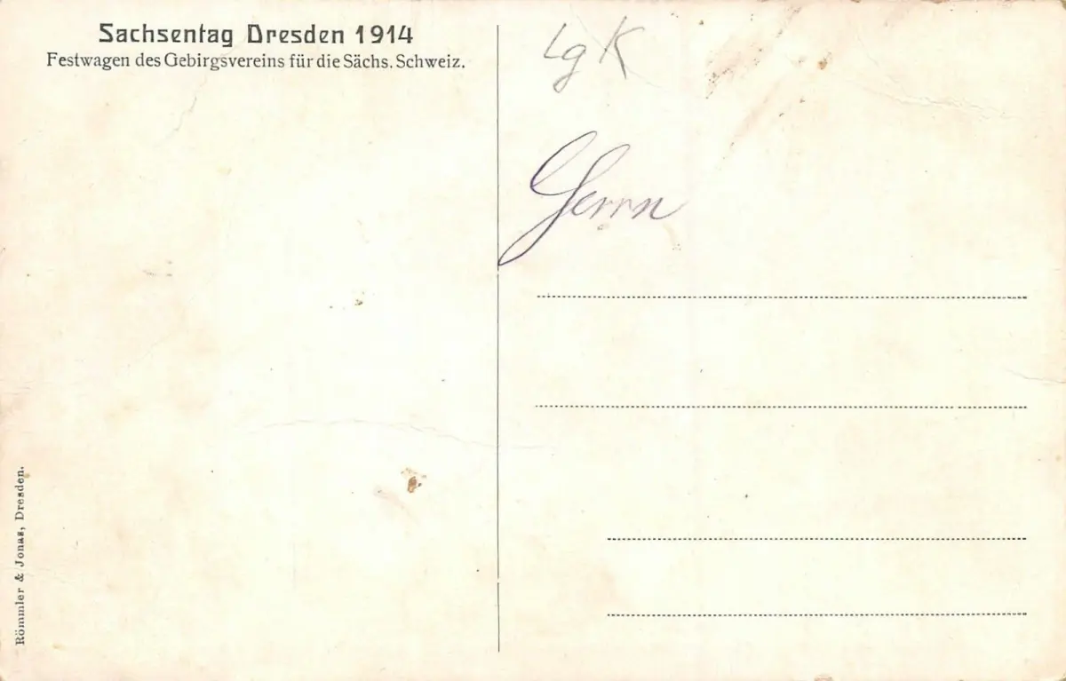 Festwagen des Gebirgsverein Sächs. Schweiz Sachsentag Dresden 1914 AK