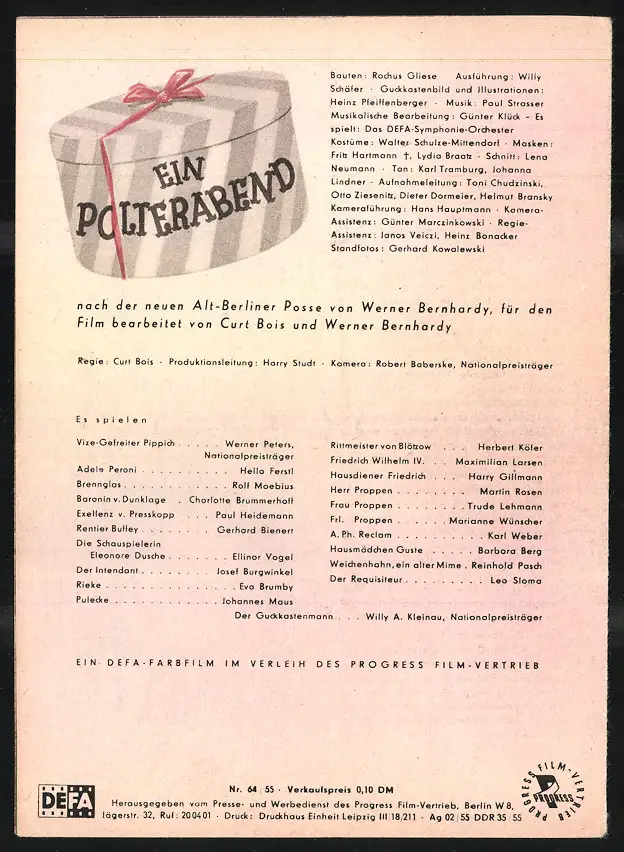 Filmprogramm PFI Nr. 64 /55, Ein Polterabend, Werner Peters, Hella Ferstl, Regie: Curt Bois