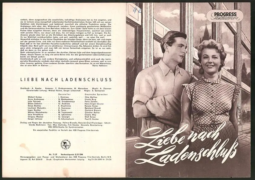 Filmprogramm PFI Nr. 7 /57, Liebe nach Ladenschluss, I. Dmitriew, N. Medwedewa, Regie: S. Samsonow