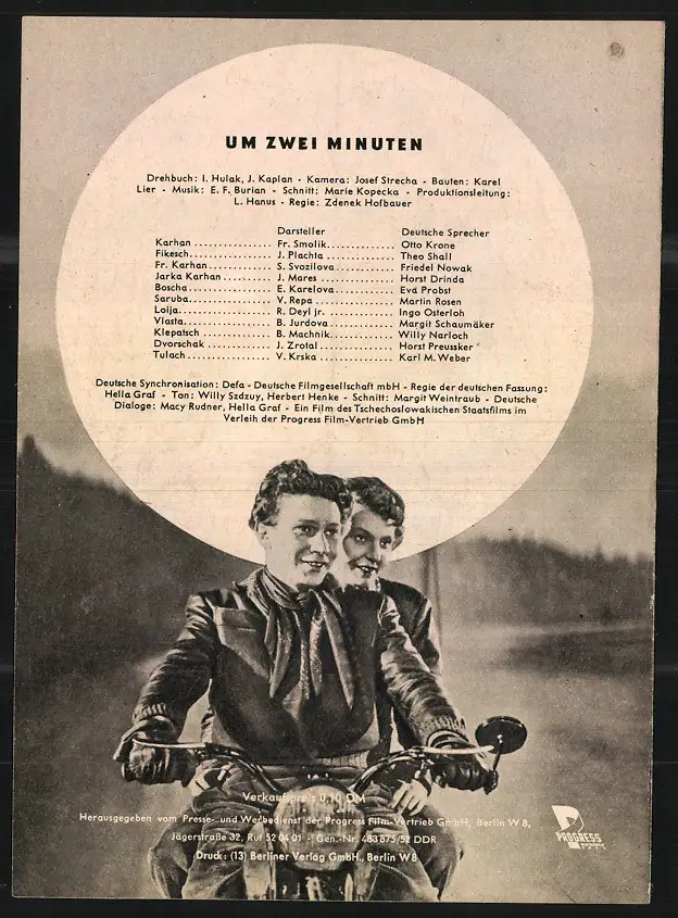 Filmprogramm PFI, Um zwei Minuten, Fr. Smolik, J. Plachta, Regie: Zdenek Hofbauer