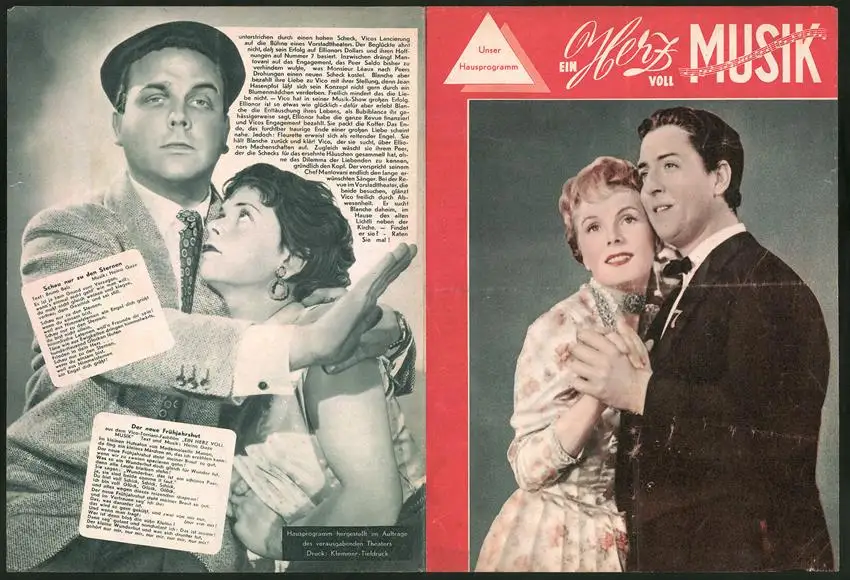 Filmprogramm Unser Hausprogramm, Ein Herz voll Musik, Vico Torriani, Ina Halley, Regie: R. A. Stemmle