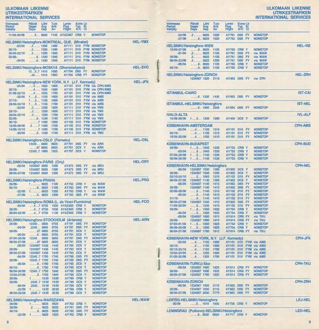 Finnair - Advance Timetable 1980 - 18 Seiten