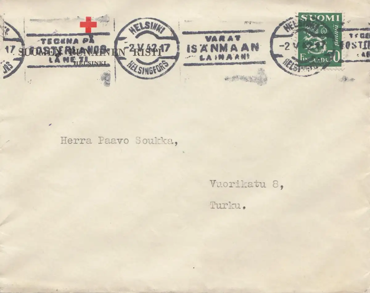 Finnland: 1942: Helsinki Rotes Kreuz nach Turku