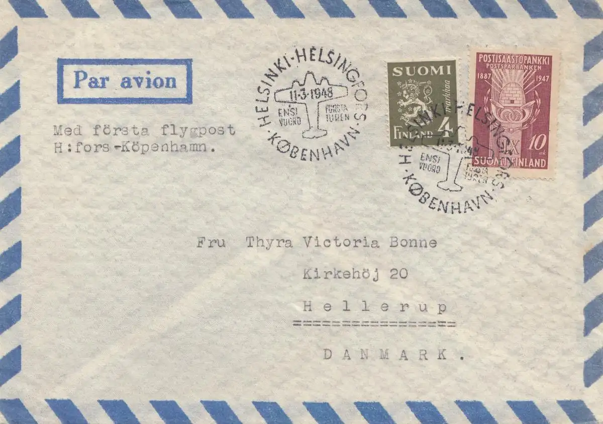 Finnland: 1948: Luftpostbrief von Helsinki/Kopenhagen