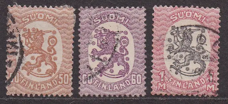 Finnland, Mi-Nr. 81 A, 84 A + 86 A gest., Wappen