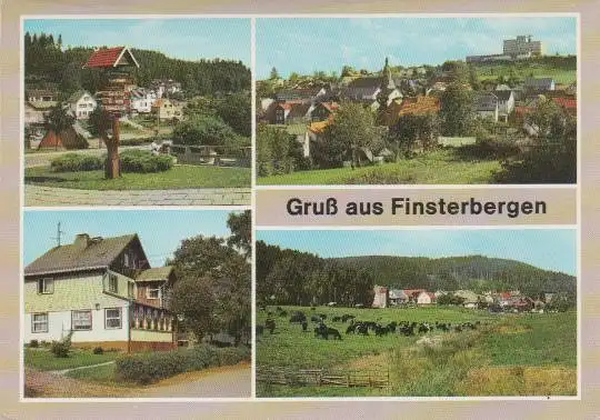 Finsterbergen - Wegweiser, Teilansicht, Cafe Waldschlösschen - 1990