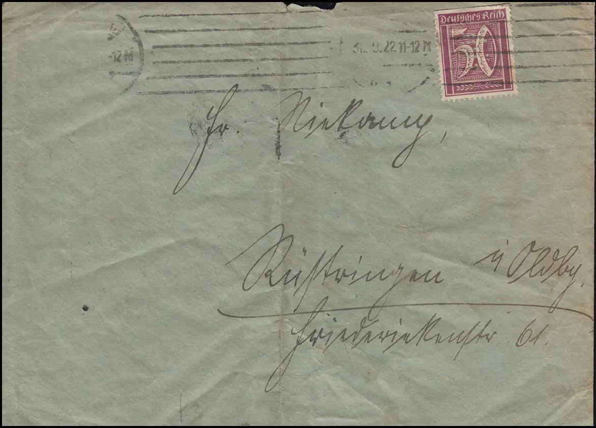 Firmenlochung JHV auf Ziffer 50 Pf als portogerechte EF auf Drucksache 30.8.22