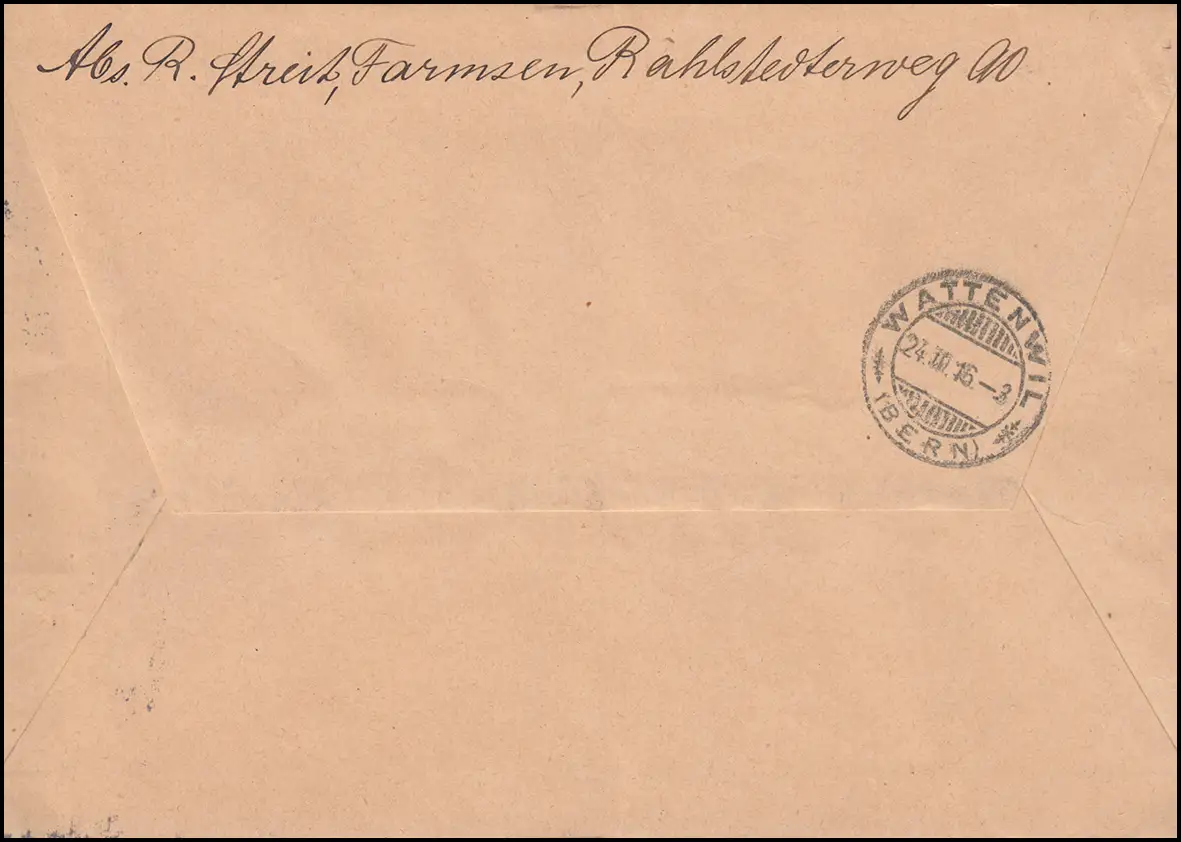 seitenverkehrte Lochung, portogerechte Einzelfrankatur mit Ankunftsstempel WATTENWIL (BERN) 24.10.16
