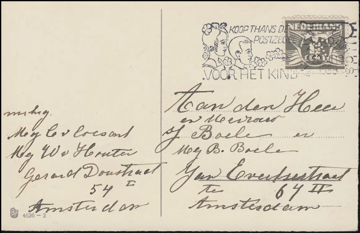 Firmenlochung/Perfin K auf 281 Taube Ansichtskarte Weihnachten, AMSTERDAM 1939