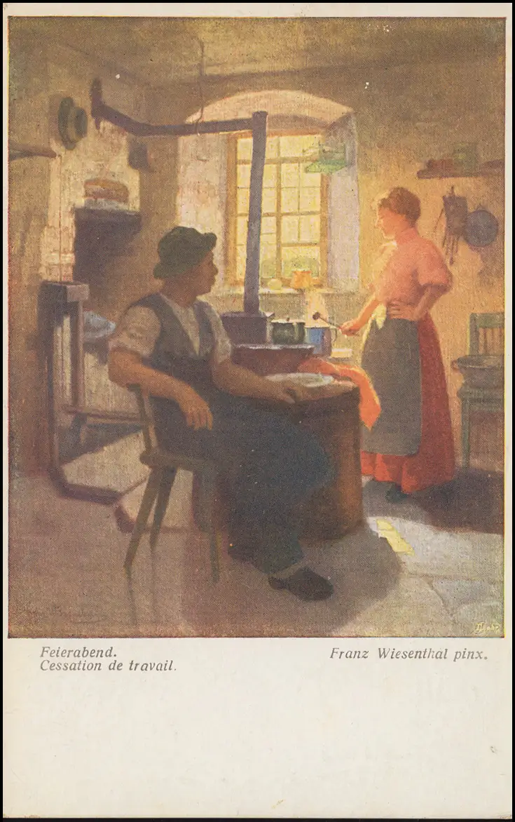 Wiener-Kunst-Ansichtskarte Gemälde von Franz Wiesenthal "Cessation de travail"