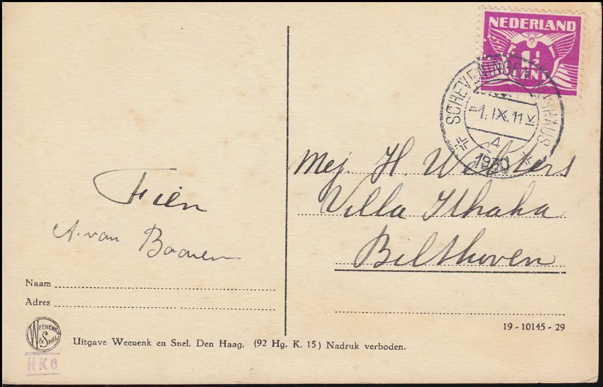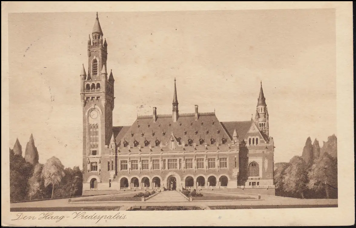 Firmenlochung/Perfin S auf 173 Taube auf AK Friedenspalast, SCHEVENINGEN 1.9.30