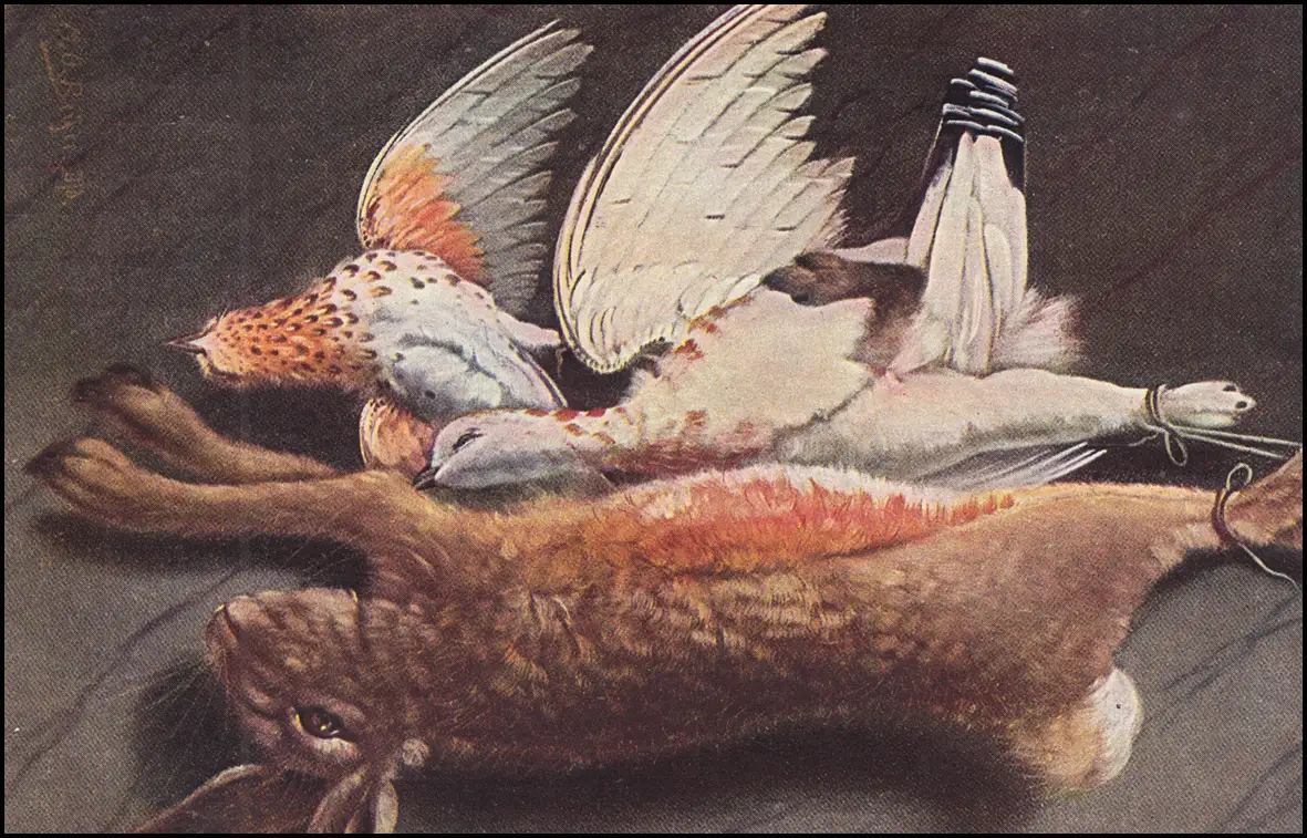 Firmenlochung/Perfin halbe 2 auf 50 Ziffer auf AK Erlegtes Wild AMSTERDAM 6.8.11