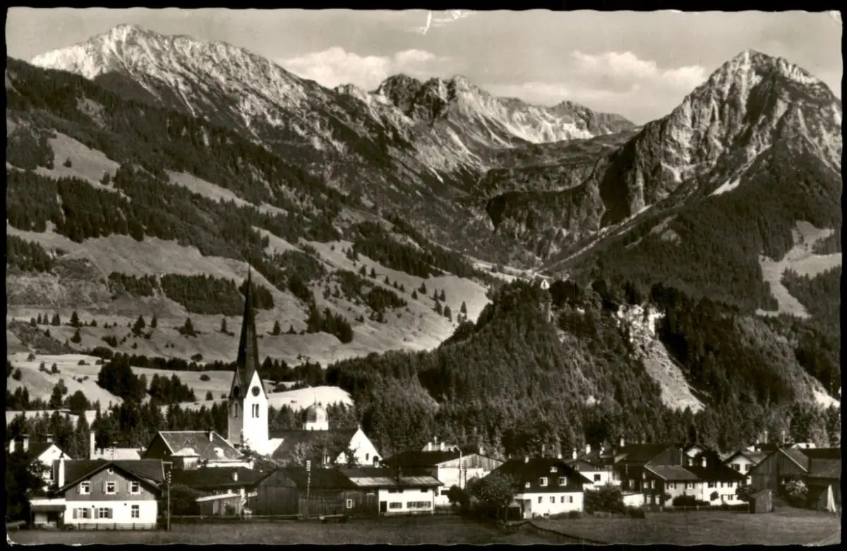 Fischen im Allgäu Panorama-Ansicht mit Entschenkopf, Nebelhorn und Rubihorn 1959