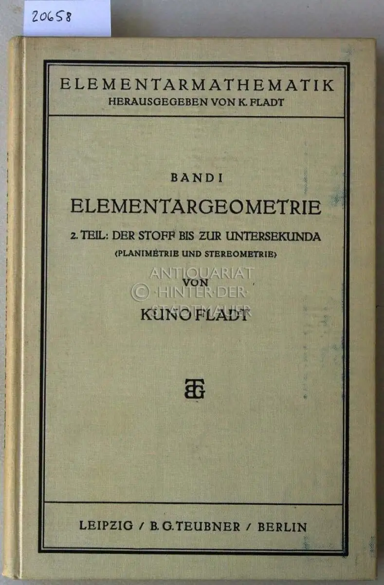 Fladt, Kuno: Elementargeometrie. 2. Teil: Der Stoff der Untersekunda (Planimetrie und Stereometrie). [= Elementarmathematik, Bd. 1].