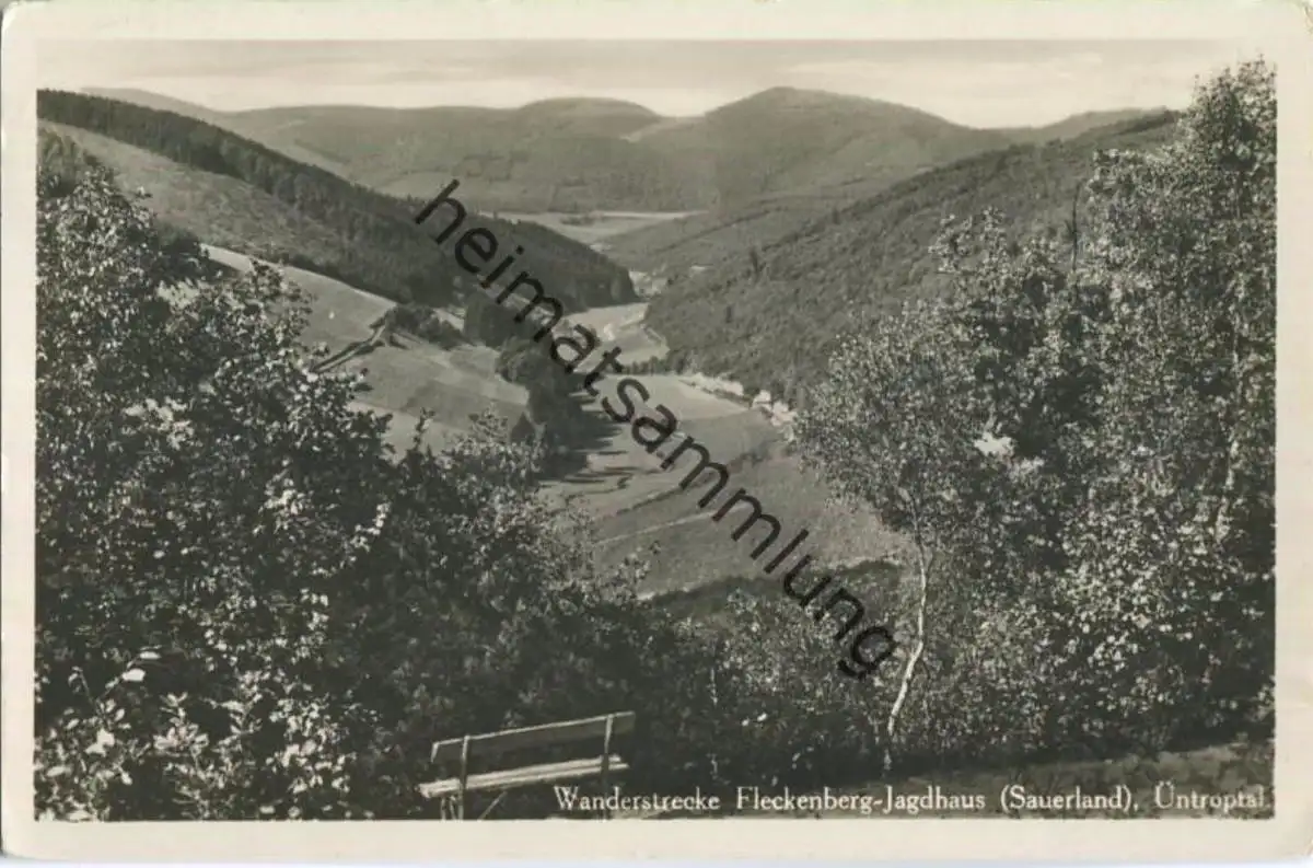 Fleckenberg - Wanderstrecke Fleckenberg-Jagdhaus - Üntroptal - Foto-Ansichtskarte - Verlag Jos. Grobbel Fredeburg - Marke entfernt (E40575) gel.