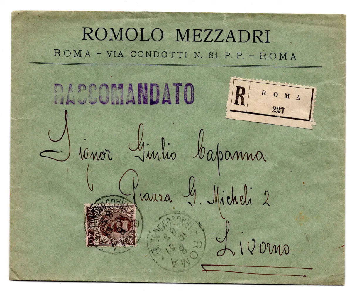 Umschlag - Floreale Cent. 40 Nr. 74 isoliert auf Einschreiben für Livorno - sehr gute Qualität und Zentrierung der Briefmarke - Kat. euro 100 Cod. 17/17