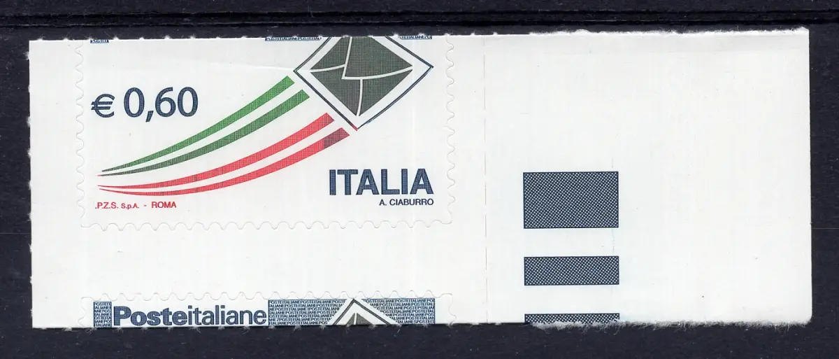 Vollgummi MNH - Flugbrief Euro 0,60 Nr. 3102 mit stark verschobener horizontaler Schraffur, Italienische Post unten (Kat. Unified Nr. 3154 Ba) Cod. 749/15