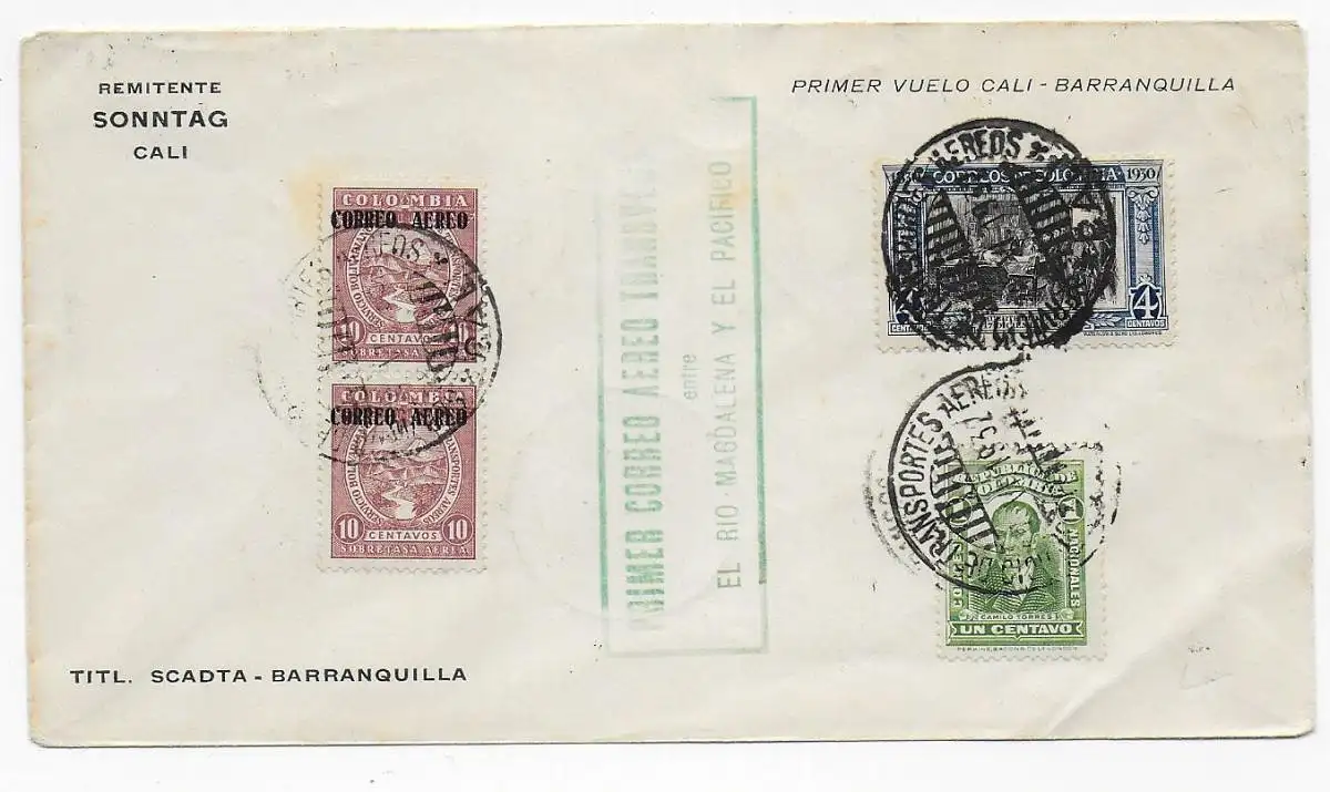 Flugpost Primer Vuelo Cali-Barranquilla, 1932