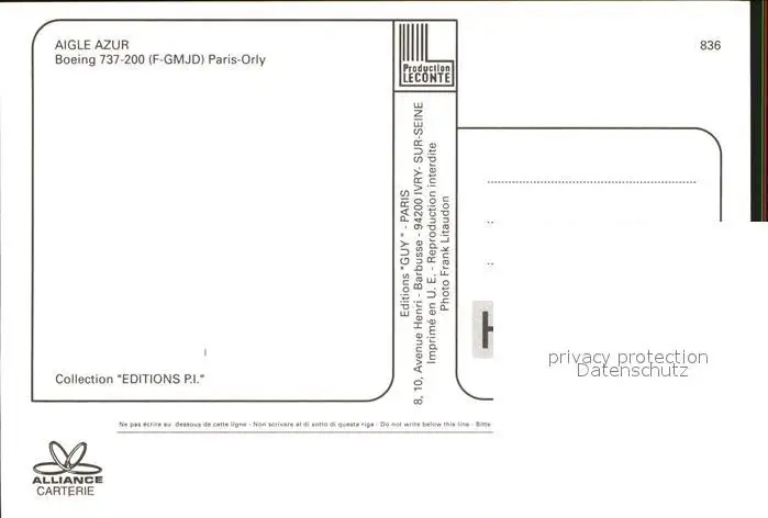 Flugzeuge Zivil Aigle Azur Boeing 737-200 F-GMJD Airplanes Avions postalisch nicht gelaufen nach 1965 Erhaltung siehe scans Alte Ansichtskarte Postkarte KathVogt
