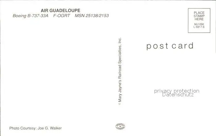 Flugzeuge Zivil Air Guadeloupe Boeing B-737-33A F-OGRT MSN 25138/2153 Airplanes Avions postalisch nicht gelaufen nach 1965 Erhaltung siehe scans Alte Ansichtskarte Postkarte Salvotta