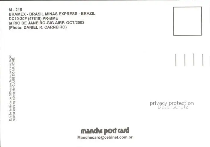 Flugzeuge Zivil Brasmex DC-10-30F 47819 PR-BME Airplanes Avions postalisch nicht gelaufen 2002 Erhaltung siehe scans Alte Ansichtskarte Postkarte PaolPID1