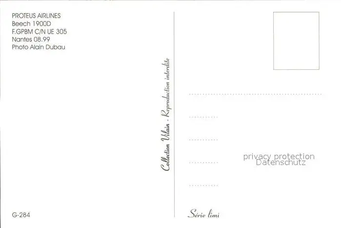 Flugzeuge Zivil Proteus Airlines Beech 1900D F-GPBM C/N UE-305 Airplanes Avions postalisch nicht gelaufen 1999 Erhaltung siehe scans Alte Ansichtskarte Postkarte PaolPID1