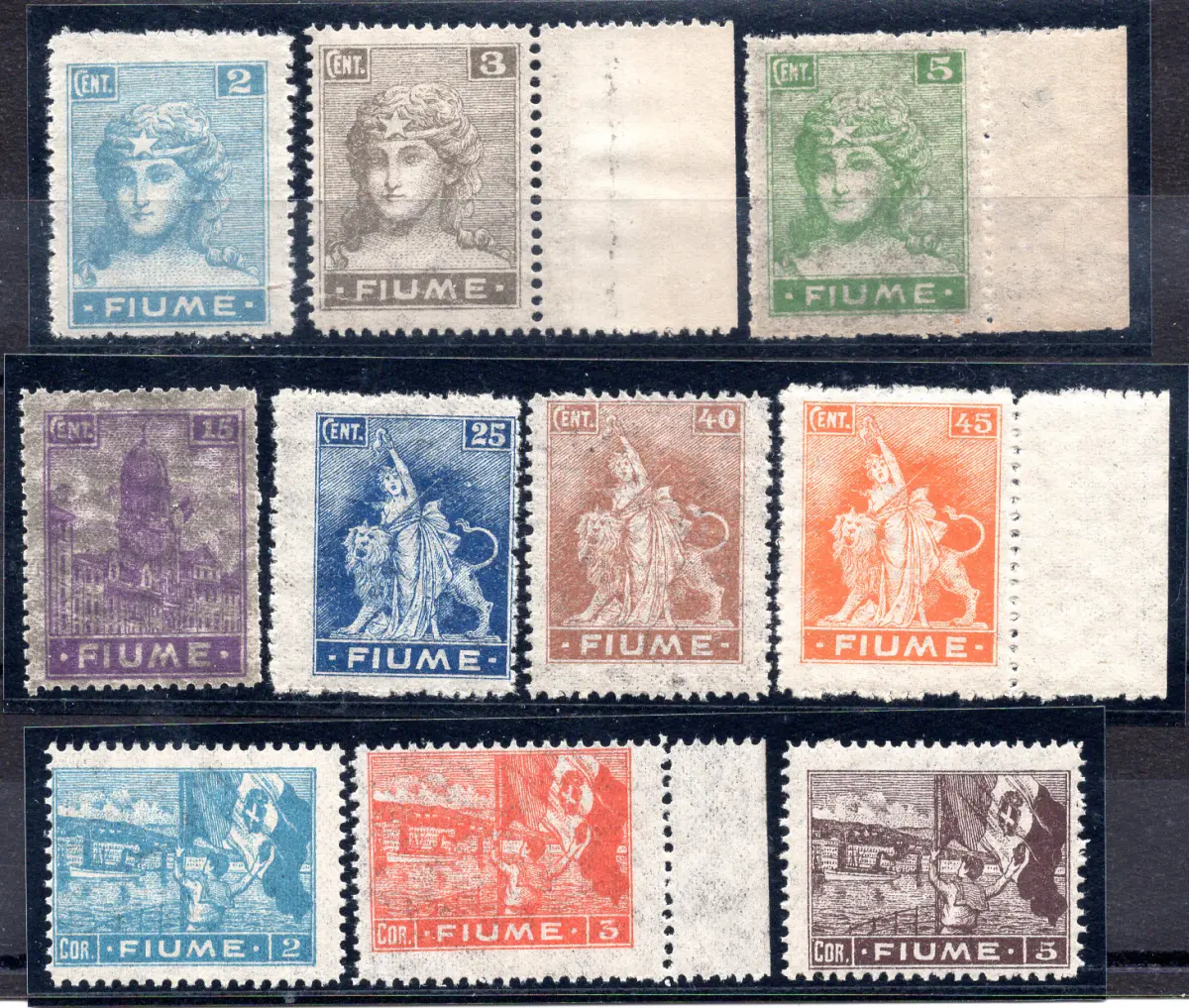 Fluss - Allegorie Serie 10 Werte (ohne 10 c. Karmin) B-Papier Vollgummi - Fluss - Allegorie Nr. B32/B47 komplette Serie 10 Werte (ohne 10 c. Karmin) dünnes halbtransparentes B-Papier - Selten - Kat. euro 1.125 cod n. 903/6