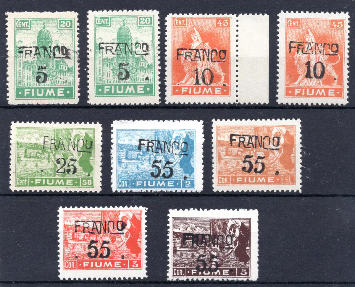 Fluss - Allegorie überdruckt Franco Serie 9 Werte Papier C Vollgummi MNH - Fluss - Allegorie überdruckt Franco Nr. C75 // C86 komplette Serie 9 Werte inkl. zwei anderen Überdruckwerten (Nr. C75a, C77a) - gute Qualität C-Papier kompakt weiß - Selten - Kat. 340 n. 906/6