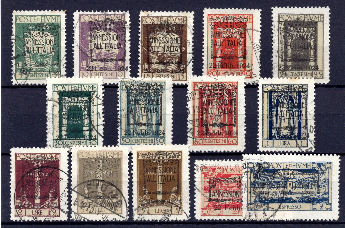 GEBRAUCHT - Fluss - Aufdrucke Annexion to Italy Nr. 14/225 + Espress Nr. 11/12 komplette Serie gebraucht, Stornierung nicht garantiert - Kat. euro 1.300 Cod.972/182