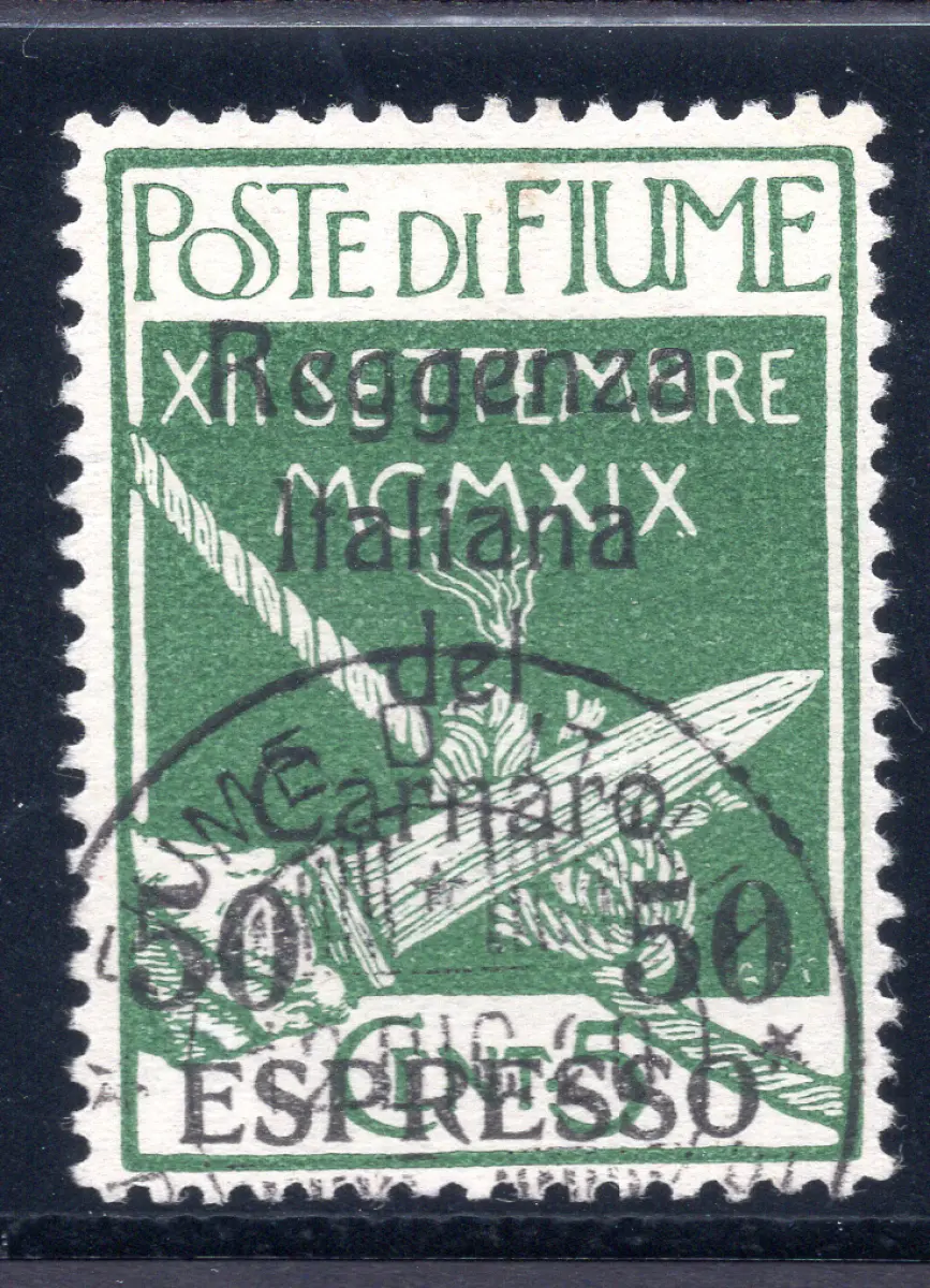 GEBRAUCHT - Fluss - Italienische Regentschaft von Carnaro Espressi 50 c. auf 5 grün Nr. 4 sehr gutes gebrauchtes Exemplar, gut zentriert - signiert Emoroso - Kat. euro 160 Cod.976/182