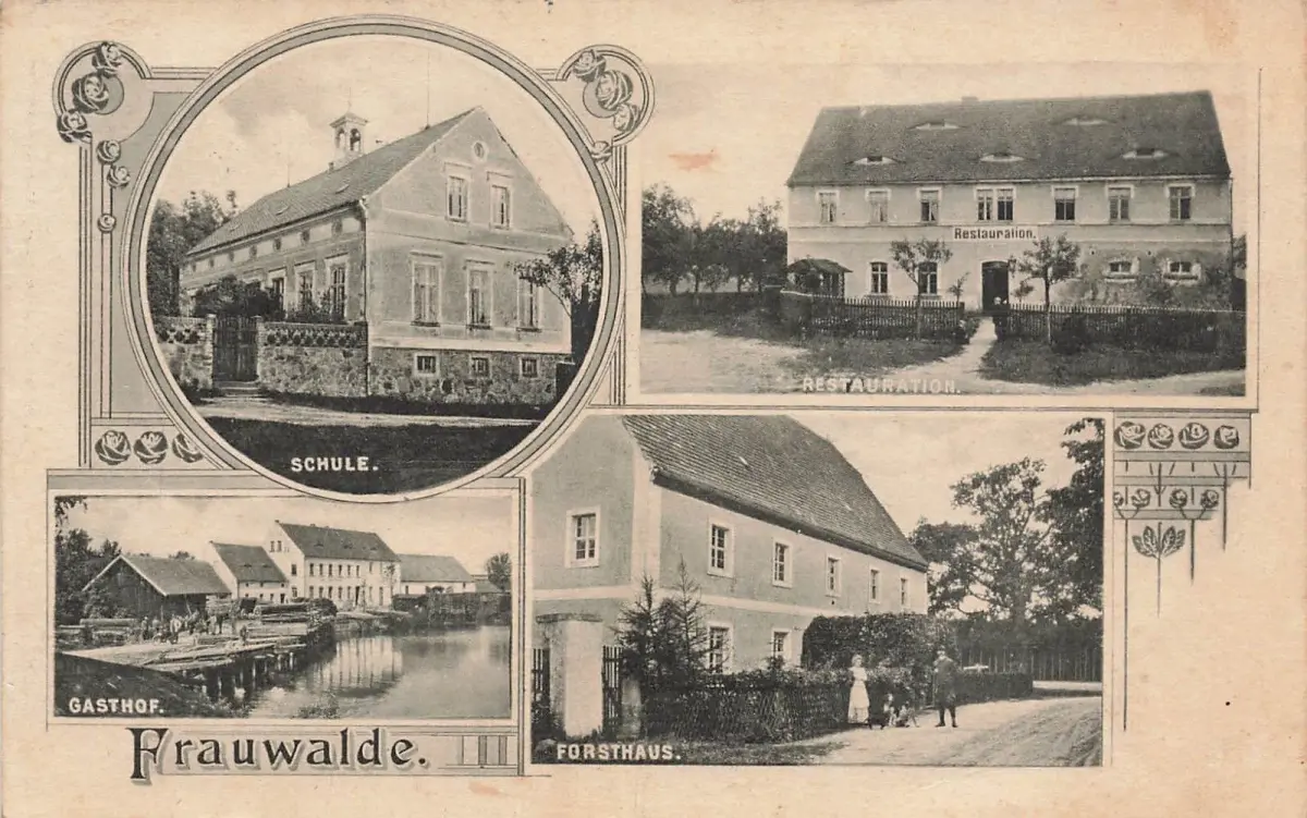 Forsthaus, Restauration und Schule in Frauwalde Sachsen Postkarte AK 1913