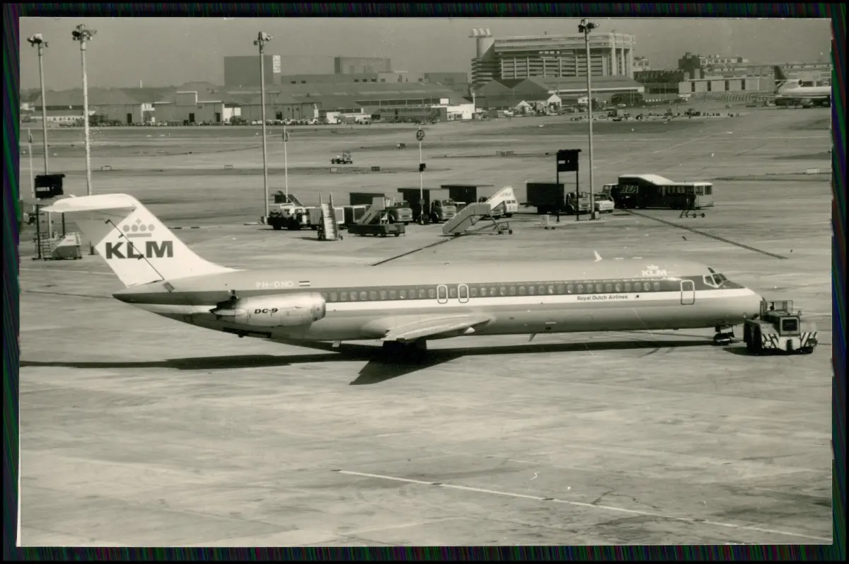 Foto 12x8cm - Flugzeug KLM DC-9 am Flughafen - wird von Schlepper gezogen