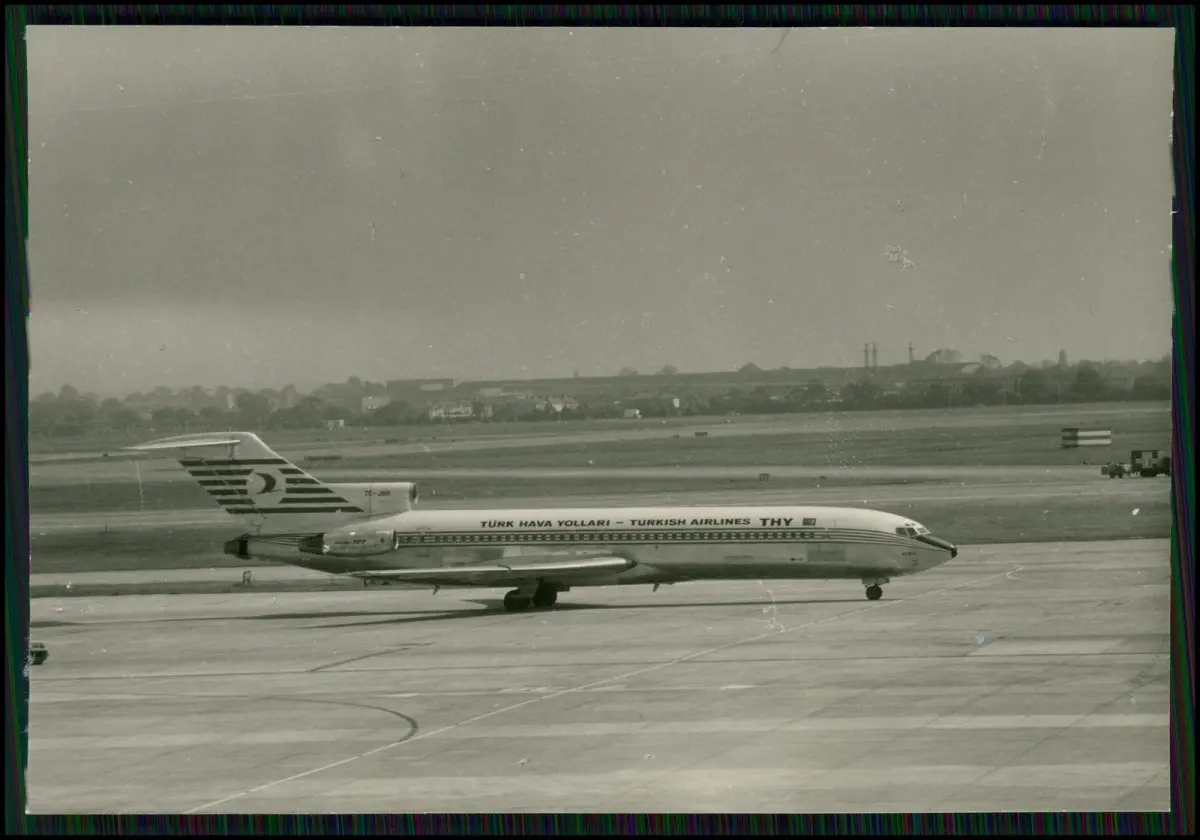Foto 12x8cm - Flugzeug - THY Türkei Turkish - Airlines Boeing 727 auf Rollfeld