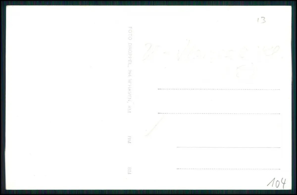 Auf der Rückseite befindet sich eine Beschriftung sowie der Aufdruck 'Foto Drüppel, Wilhelmshaven'.