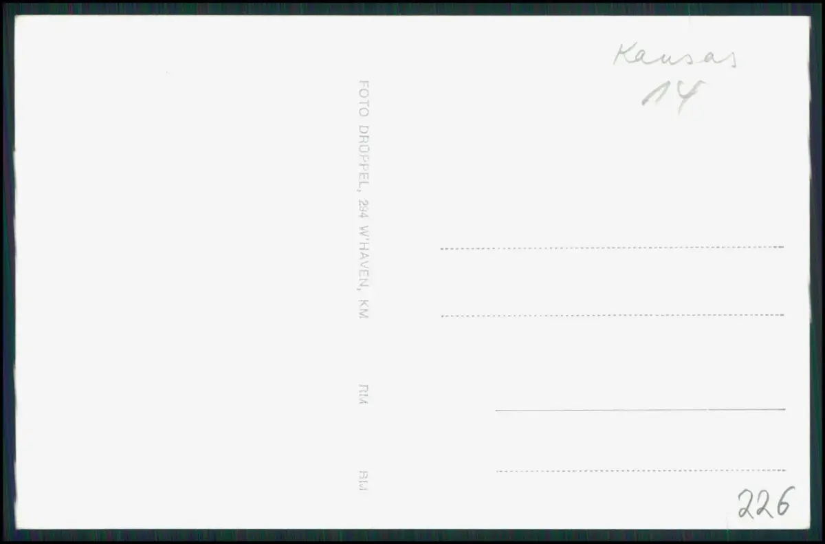 Fotopapier mit Prägung Foto Drüppel Wilhelmshaven KM und handschriftlicher Notiz Kansas.