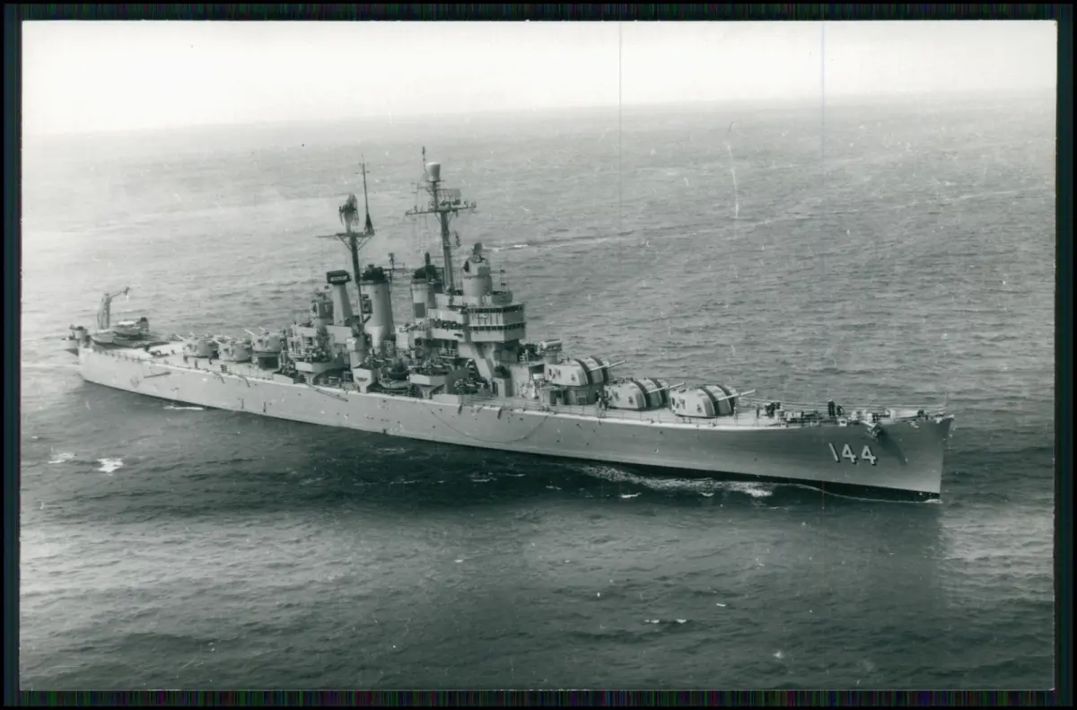 USS Worcester CL144 auf See. Der US Kreuzer wurde 1948 in Dienst gestellt und diente unter anderem in Guantanamo Bay sowie im Mittelmeer.