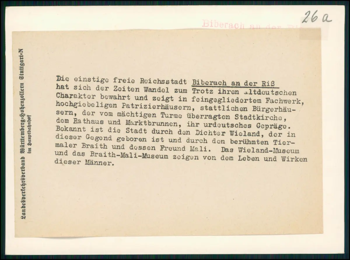 Maschinenschriftlicher Infotext über Stadtgeschichte und Kultur.