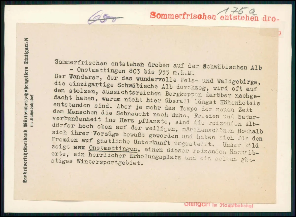 Onstmettingen liegt auf der Schwäbischen Alb im Zollernalbkreis und gehört zu den traditionsreichen Hochalborten zwischen rund 800 und 950 m Höhe. Das Gebiet ist geprägt von weiten Hochflächen, Waldkuppen und alten Siedlungsstrukturen. Durch seine Lage am Albtrauf entwickelte sich Onstmettingen früh zu einem beliebten Erholungsort mit ruhigem, gesundem Höhenklima.